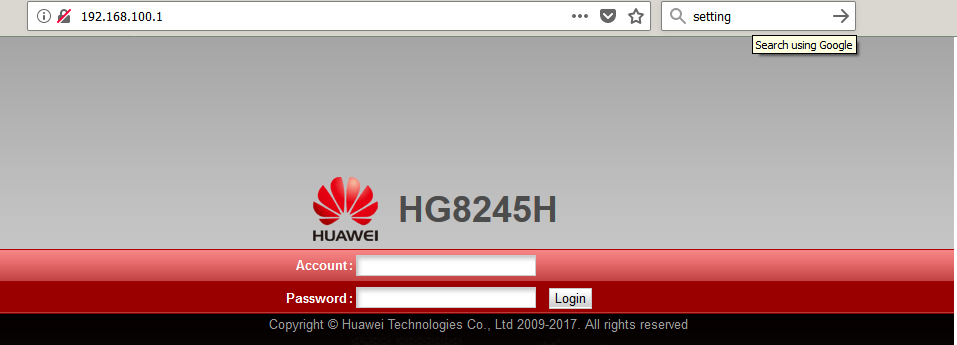 Yang pertama kita lakukan adalah pergi ke http://192.168.100.1 (Login page standar huawei HG8245H) melalui jaringan wifi dari router indihome.