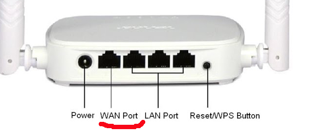 Colok kabel lan ke router indihome ke port LAN 1, lalu hubungkan kabel LANnya ke tenda n301 pada port WAN.