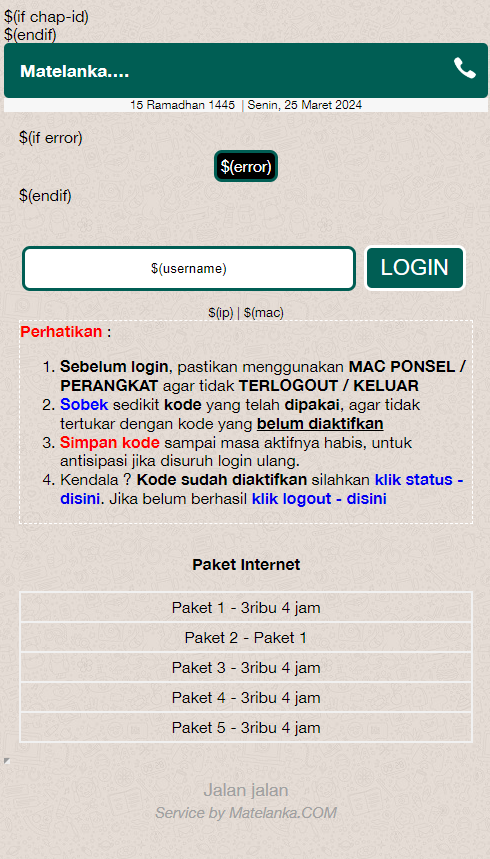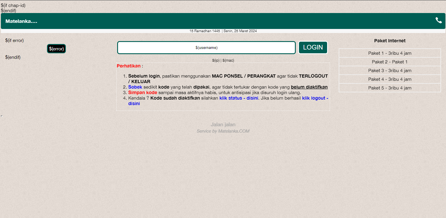 Berikut ini merupakan template login hotspot MikroTik dengan tema yang mirip seperti chat WhatsApp yang saya bagikan secara gratis untuk kalian semua.