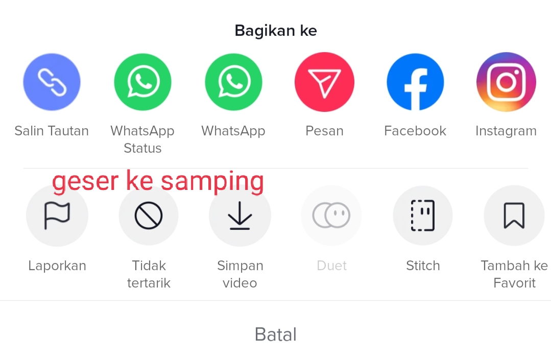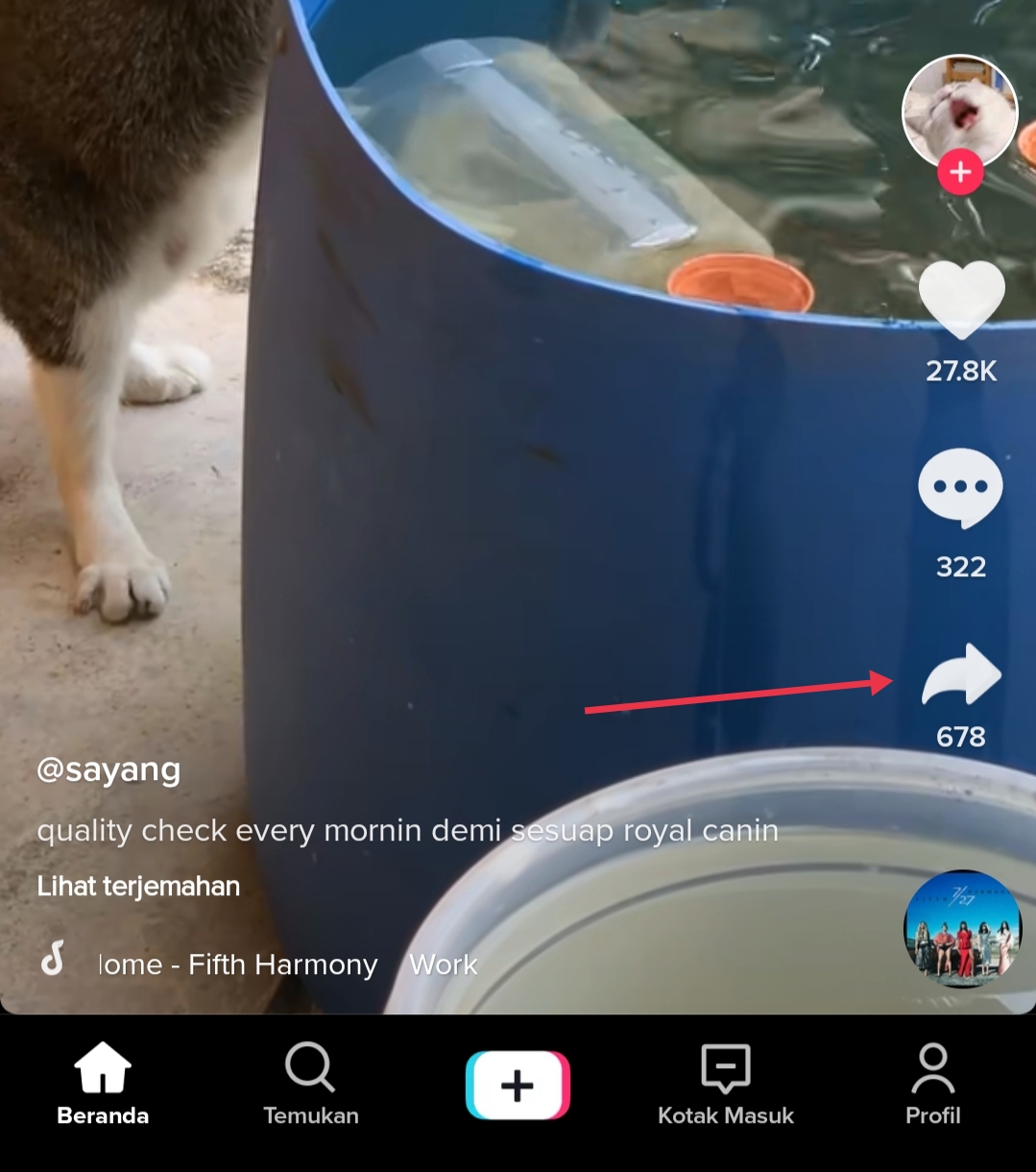 Klik tombol share (gambar panah ke arah kanan) pada video tiktok yang akan kita buat jadi wallpaper