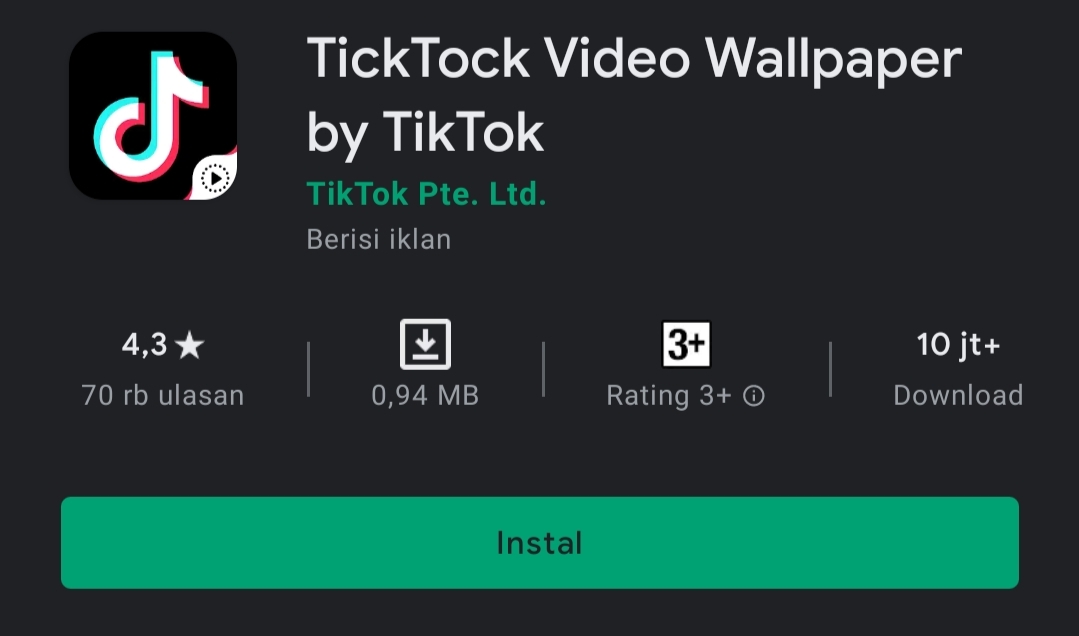 - Kamu akan diarahkan ke playstore "Tiktock Video Wallpaper by Tiktok"