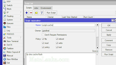 Begitulah cara mudah konfigurasi mikrotik, pasang script flush cache dns secara otomatis.