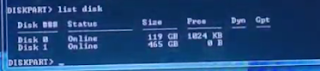 lalu ketik list disk dan enter